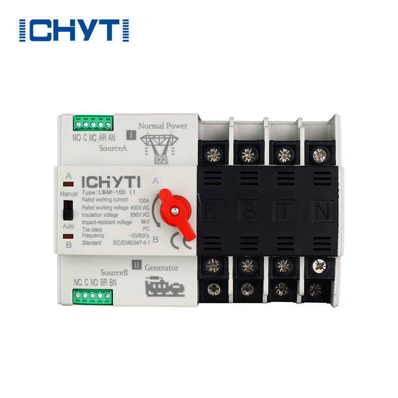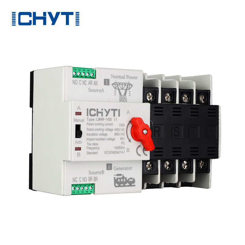 Прекинувачот за автоматско пренос на ICHYTI од фабриката во Кина од 100 ампери е идеален за итни системи за напојување со 400V и 100A наизменична струја на 50 или 60Hz. Неговиот компактен дизајн, сигурната функционалност за пренос, лесната инсталација и одржување и долгиот животен век го прават популарен избор. Прекинувачот за автоматско пренос од 100 ампери е погоден за различни апликации каде континуираното напојување е неопходно и може да се ракува и електрично и рачно. Автоматскиот преносен прекинувач од 100 ампери од серијата LW2R е во согласност со барањата на IEC60947-6-1 за нисконапонски разводни и контролни запчаници.
