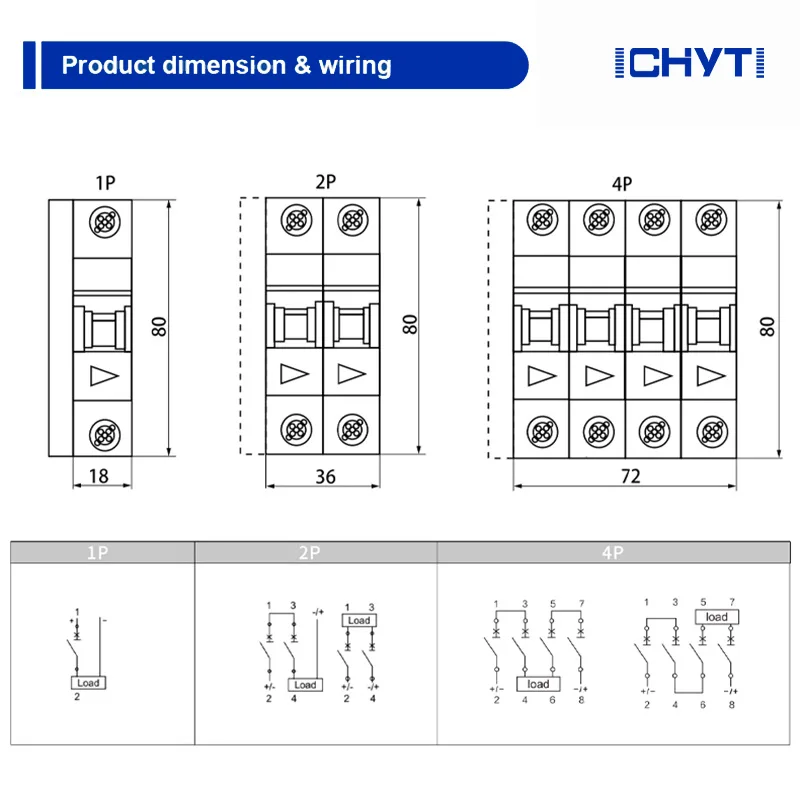 Еден од кинеските производители на прекинувач на струјното коло со еднонасочна струја, кој нуди одличен квалитет по конкурентна цена, е CHYT. Слободно стапете во контакт. Нејзината номинална струја не треба да надминува 63 А.