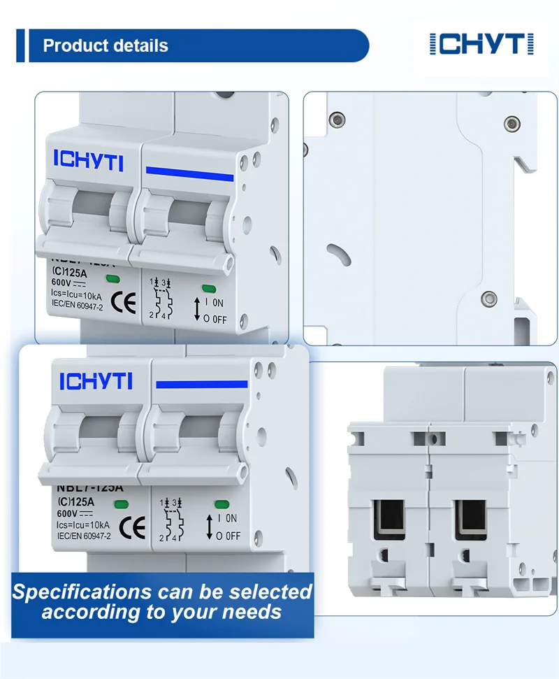 Како одговор на потребите за примена на клиентите во областа на складирање на сончева енергија и нова инфраструктура, ICHYTI Manufacturer лансираше нов NBL7-125A 125A DC MCB без поларитет. Овој DC прекинувач е погоден за сценарија со работен напон од DC1000V/DC600V и опсег на номинална струја од 80A до 125A. Може да постигне функции за заштита од краток спој и заштита од преоптоварување за DC системите, а исто така служи како изолација и контрола на колото.