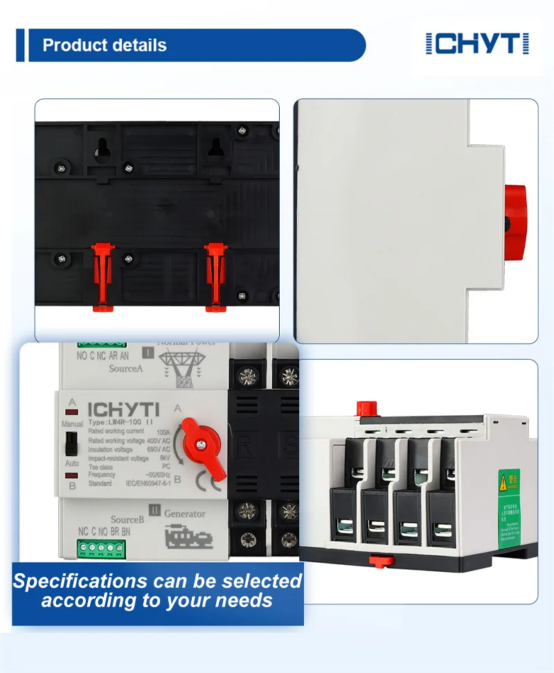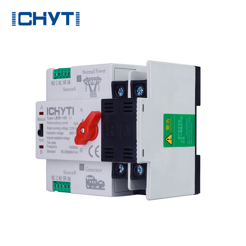 Фабрика во Кина ICHYTI Еднофазен автоматско префрлување со попуст со попуст има три функции на префрлување во системот за напојување на трифазна четирижична електрична мрежа, вклучувајќи автоматско префрлување на напојување во мирување, резервно напојување и електрична мрежа и генератор. Може да ја открие ефективната вредност на трифазниот напон и ефективната вредност на фазен напон и фазата на два извори на енергија во реално време и автоматски да се префрли од ненормални извори на енергија на нормални извори на енергија во случај на пренапон, недоволно напон или фазно губење во која било фаза.
